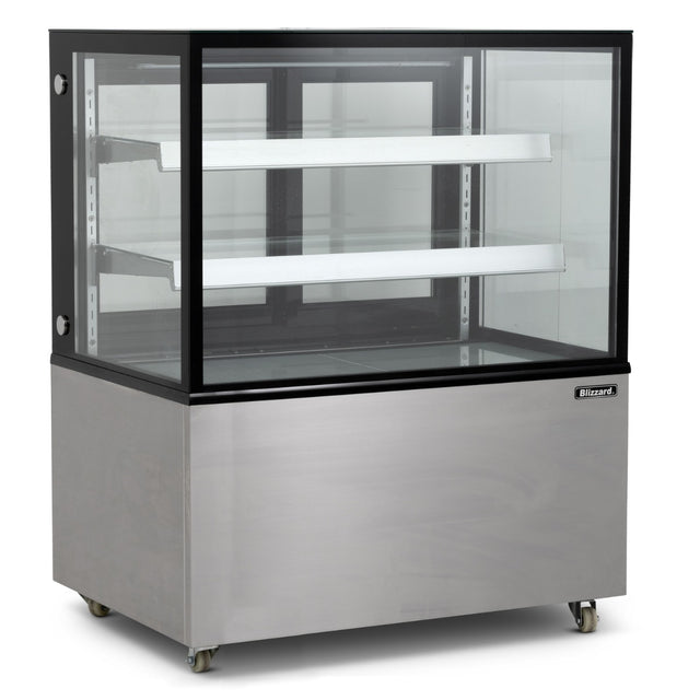 Stainless steel construction|Double glazed glass|2 x adjustable glass shelves|Rear sliding doors for easy management|LED lighting from top & underneath of each shelf|4 castors with 2 braked|Ideal for cafes and retail outlets looking to showcase and sell fresh food|