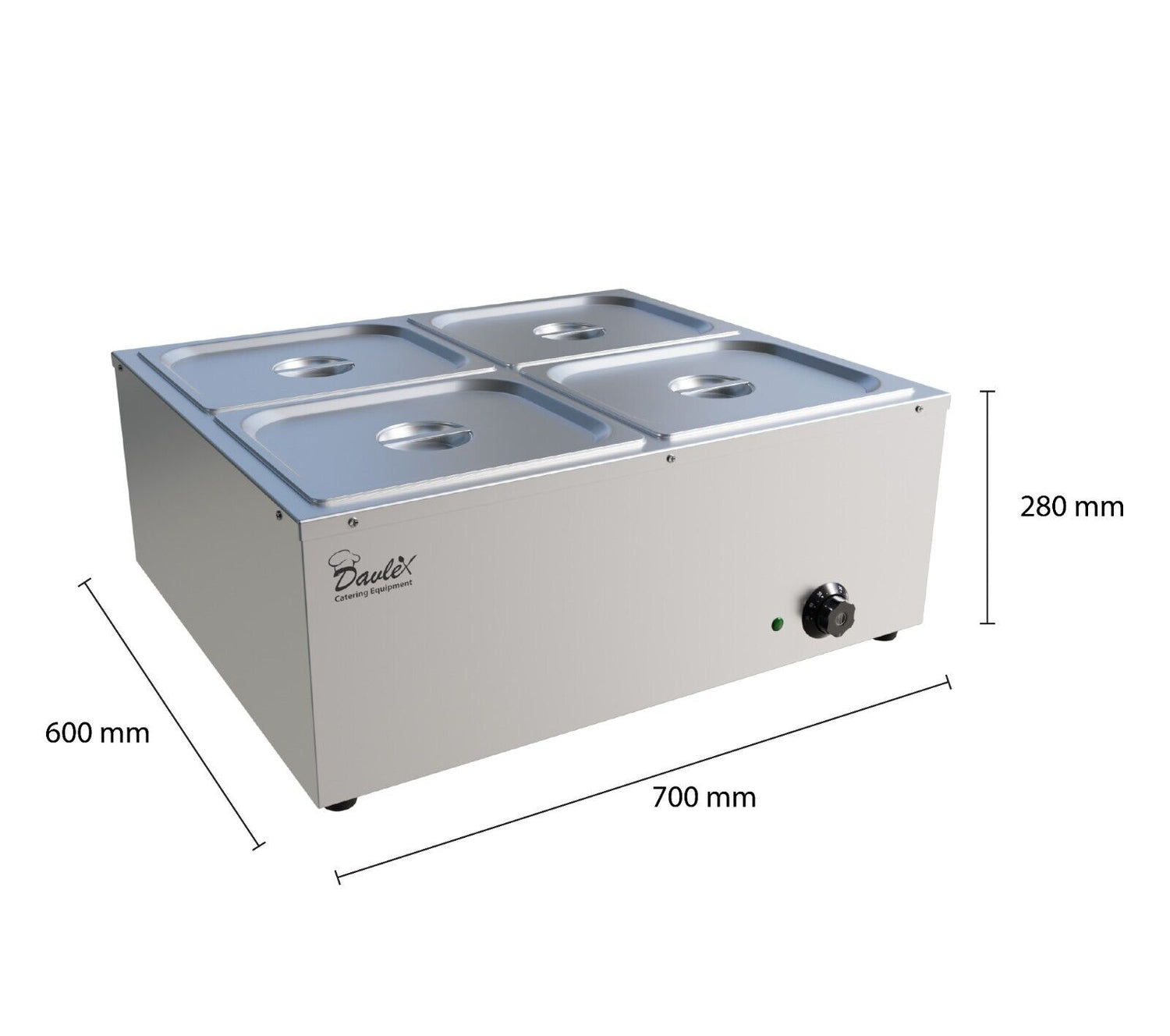 Upgrade your food service business with the Davlex Electric 4 Pot Bain Marie. This versatile appliance is designed to keep your food warm and ready to serve at all times. The electric heating element provides consistent heat, while the four included pots allow you to serve multiple dishes at once.