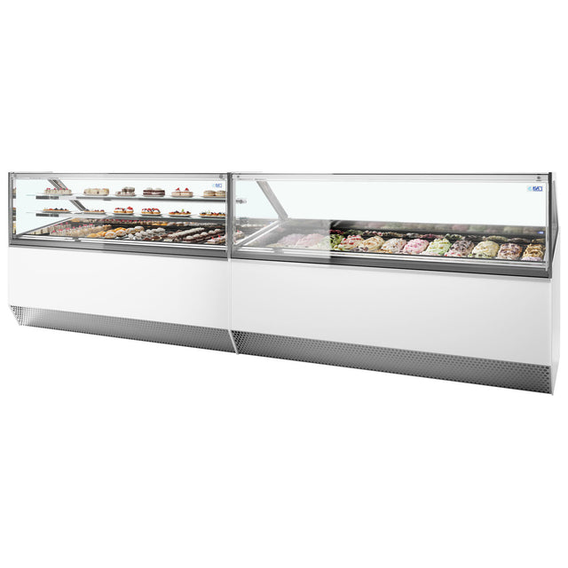 The Millennium Pastry from ISA brings a contemporary design for modern environments. The clean lines of this popular display are ideal for presenting your very best product. A generous refrigerated display deck is complemented by 2 ambient shelves (each with under-shelf lighting) enabling you to maximise display space and sales. The unit comes fitted with large durable, lockable castors for moving the cabinet, together with hinged glass to give easier access for cleaning and keeping your display looking perfect.