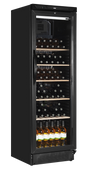 This is a version of the best selling SC381 finished in stylish black, inside and out and is supplied with 6 adjustable wooden shelves for the display and storage of up to 78 wine bottles. It has fan assisted cooling and comes with a temperature display, There is a vertical LED light inside and a lock fitted as standard.